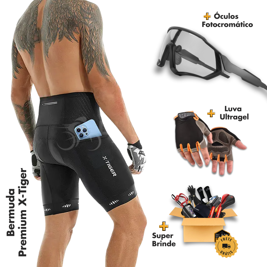 Combo Performance | Bermuda Premium + Luva + Óculos + Brinde